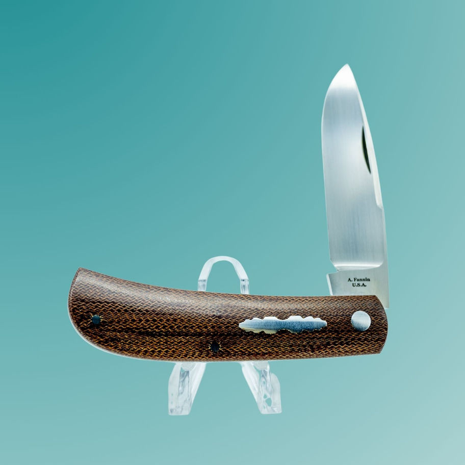 A striking take on a traditional profile, this Moonshiner features rugged brown canvas Micarta scales, a classic NYKC shield inset into the handle, and fine texturing for a secure grip and timeless appeal.